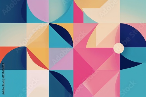 © AImageZ, Obraz premium Minimal abstract geometric pattern in pastel colors with sharp angles
