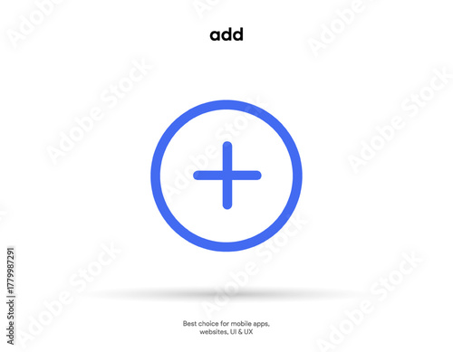 © Carkhe, Obraz premium Minimal add button icon. Gray plus sign inside a light circle. Flat vector for UI and UX. For apps web and mobile interfaces. Isolated scalable editable.