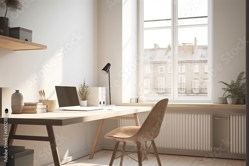 © FrankBoston, Fototapeta premium Minimal aesthetic workspace, generative ai