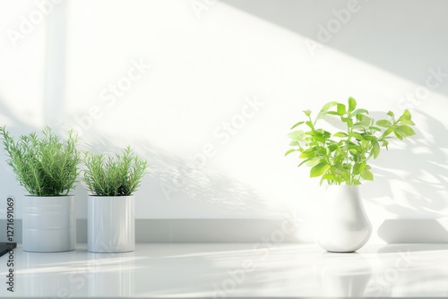 Fototapeta premium Minimal and Airy Kitchen Background with Glass Elements, Soft Sunlight, and...