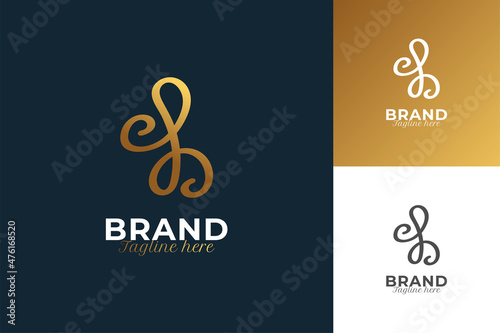 © WzKz, Fototapeta premium Minimal and Elegant Initial Letter B Logo Design with Handwriting Style in Golden Gradient. Handwritten Signature Logo for Identity