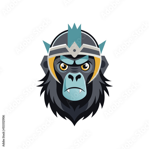 © hmdahsan952, Fototapeta premium Minimal Angry Chimpanzee Tribal Face icon vector illustration