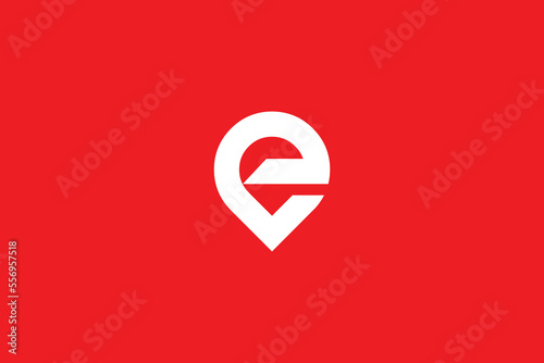 © Logo Peak, Fototapeta premium Minimal Awesome Trendy Professional Letter E Location Icon Logo Design Template On Red Background
