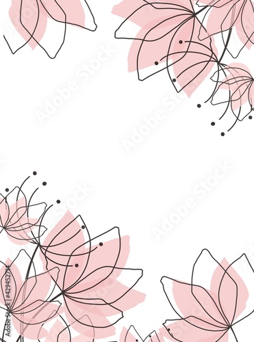 © Svetlana, Fototapeta premium minimal background in pink flowers and tropical summer leaf