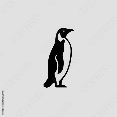 © Muhammad Adil, Naklejka premium Minimal Black and White Vector Icon of a Penguin in Modern Simple Style