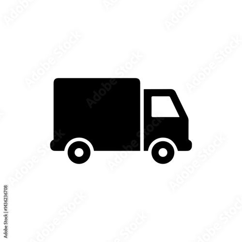 Fototapeta premium Minimal Black Delivery Truck Icon with Large Body and Visible Wheels