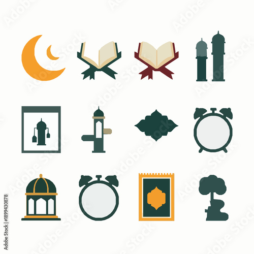 © Sujon Shah, Obraz premium Minimal black Ramadan checklist icon vector set on white background