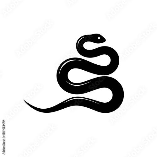 © Márcia, Naklejka premium Minimal black snake icon in a curled shape, simple vector illustration