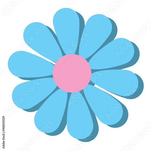 Fototapeta premium Minimal blue flower with shadow. Vector