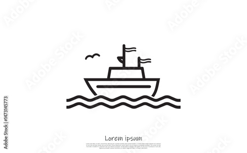 © Engineer Jahid, Obraz premium Minimal Boat Sailing on Wavy Water with Flags and a Bird in Transparent Background