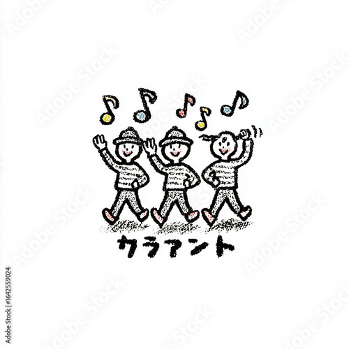 © AI Art, Fototapeta premium minimal bold logo for music brand, figures singing, notes, white background