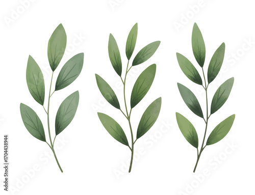 Naklejka premium Minimal botanical greenery stems isolated on white background. Watercolor...