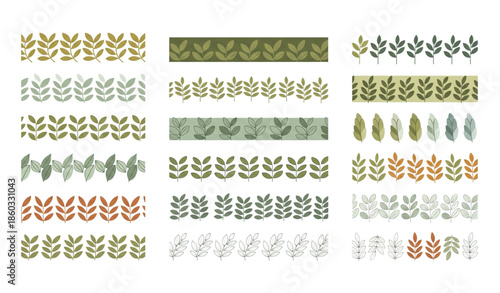 © MdRoni, Obraz premium Minimal botanical leaves pattern brush vector set isolated on white background