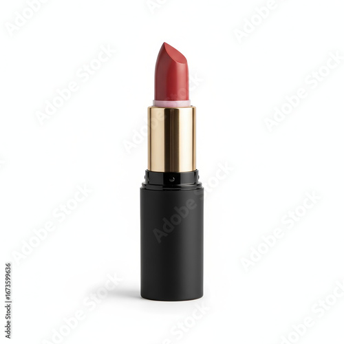 © River Stock Studio, Obraz premium Minimal bullet lipstick with cap removed and partial extension on white background, cosmetic focus