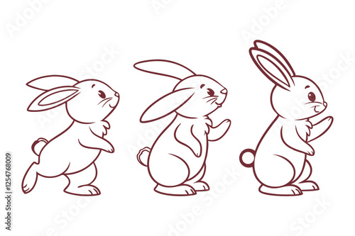 Obraz premium Minimal Bunny Line Art Doodle in Different Poses,