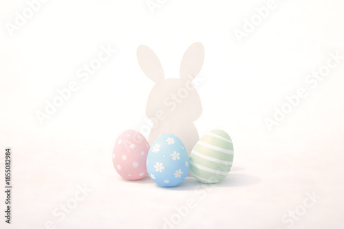 Fototapeta premium Minimal bunny silhouette with Easter eggs, soft shadows, clean modern poster