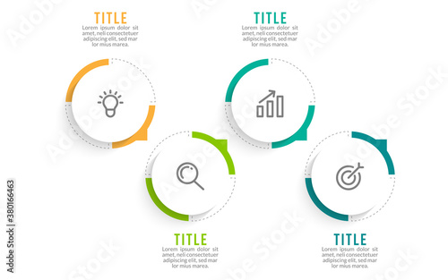 © Maulaga, Fototapeta premium Minimal Business Infographics template. Timeline with 4 steps, options and marketing icons .Vector linear infographic with four conected elements. Can be use for presentation.