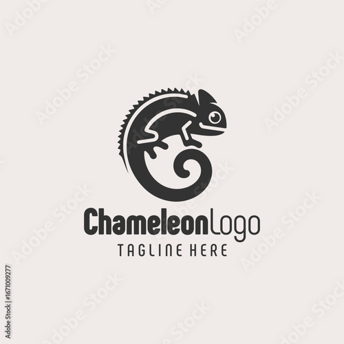© DzgnVibe, Fototapeta premium Minimal Chameleon Vector Black White