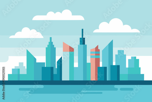 © Chamok Chandra, Obraz premium Minimal City Skyline Flat Vector