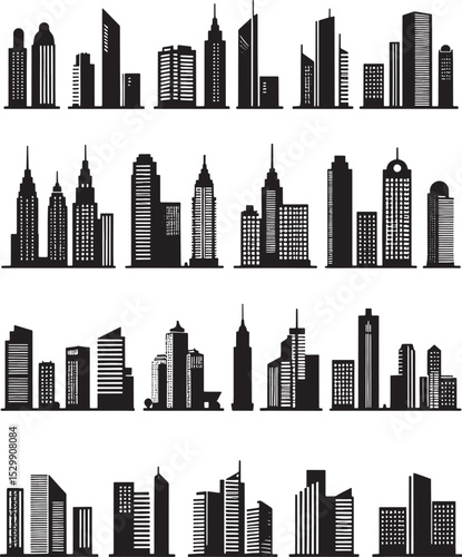 Fototapeta premium Minimal Cityscape Vector Silhouettes. Modern Buildings Clipart Pack