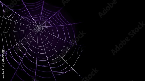 © Agapi, Naklejka premium Minimal clean purple spider web on solid black background, geometric abstract design symbolizing connection and structure.