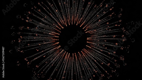 Obraz premium Minimal composition of isolated firework spark trails forming a radial...