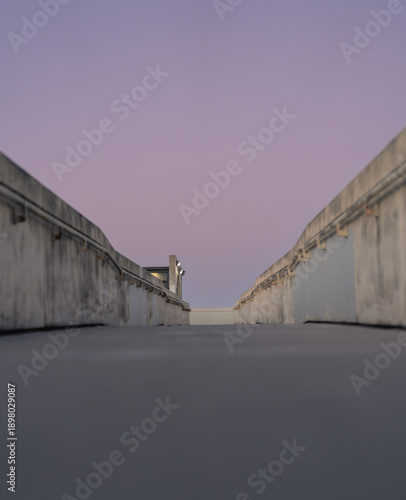 © Cavan, Naklejka premium Minimal concrete walkway with symmetrical walls under pastel space