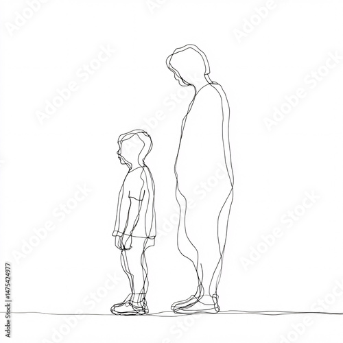 © Vilius, Obraz premium minimal continuous line drawing of human profiles in modern abstract style concept art portraying family connection identity and emotional relationships