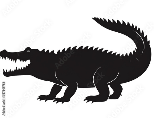 © Mukta Creative, Fototapeta premium Minimal Crocodile Silhouette with Long Tail and Open Jaw – Vector PNG.