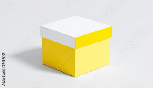© Kaniaaaaa, Fototapeta premium Minimal cube packaging with yellow lid and white base