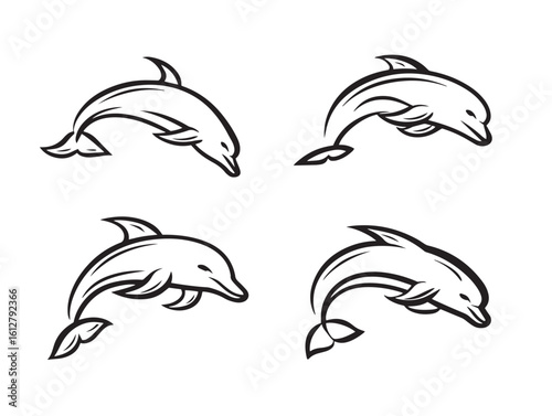 © Mitu321, Obraz premium Minimal 2D dolphin symbol pack for designs
