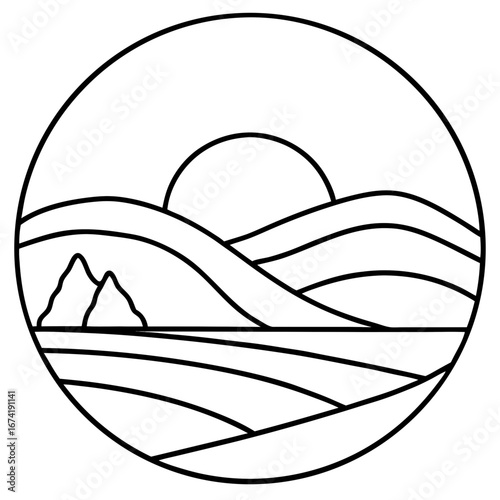 Fototapeta premium Minimal Desert Sunset Scene – Vector Outline