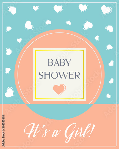 Obraz premium Minimal design Baby shower invitation card vector illustration. It's a Girl...
