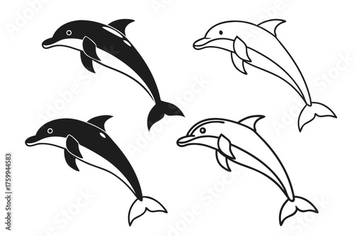 © MD, Naklejka premium Minimal dolphin outline icon set for creative projects