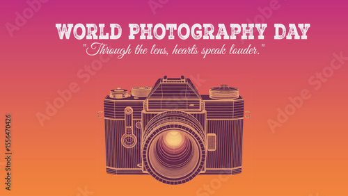 Obraz premium Minimal DSLR Camera Vector on Orange Gradient Background – Clean, Modern Flat Design for World Photography Day and Creative Use