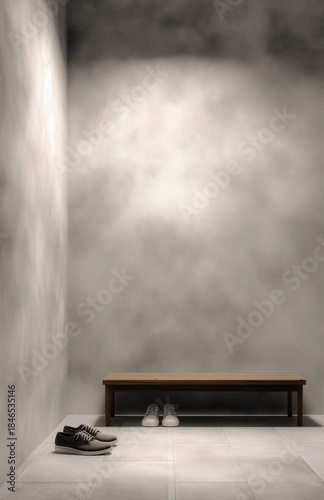 Fototapeta premium Minimal entryway hallway with bench and shoes