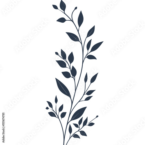 Naklejka premium Minimal feminine botanical floral branch in silhouette style. Hand drawn wedding herb, minimalistic flowers with elegant leaves. Botanical rustic trendy greenery vector