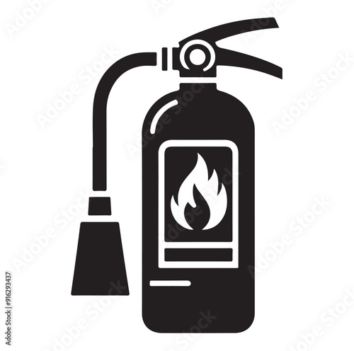 © Amir, Obraz premium Minimal Fire Extinguisher Black Silhouette Vector.