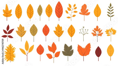 © Henrry, Fototapeta premium Minimal Flat Design Autumn Leaves Illustration Set on White Background