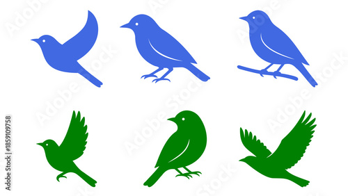 © marufa, Obraz premium “Minimal Flat Design Birds in Multiple Poses”