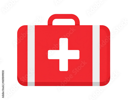 Obraz premium Minimal flat first aid kit icon with red cross and handle