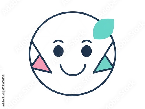 Fototapeta premium Minimal Flat Vector Icon of Smiling Face Composed of Geometric Shapes...