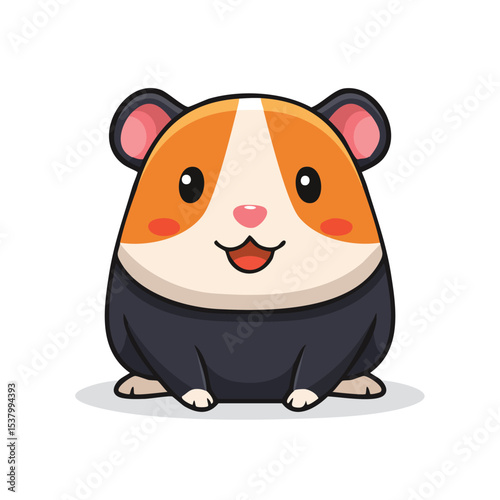 © Fajar, Fototapeta premium Minimal Flat Vector of a Cute Guinea Pig with Bold Black Outline, Happy Expression, No Gradients