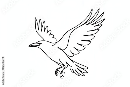 © Emil, Obraz premium Minimal Flying Raven Line Art Logo