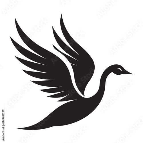 © QuickDesign24, Fototapeta premium Minimal flying swan black outline vector illustration with transparent background for creative projects