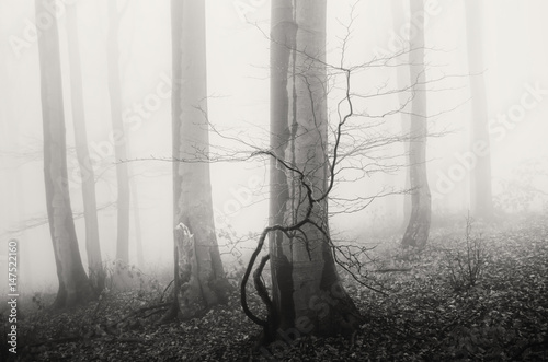 Obraz premium minimal forest landscape with trees in fog black and white