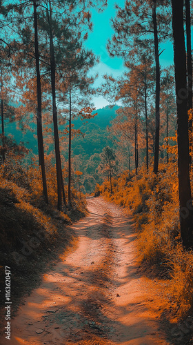 © ABX, Obraz premium Minimal forest path with soft shadows and light