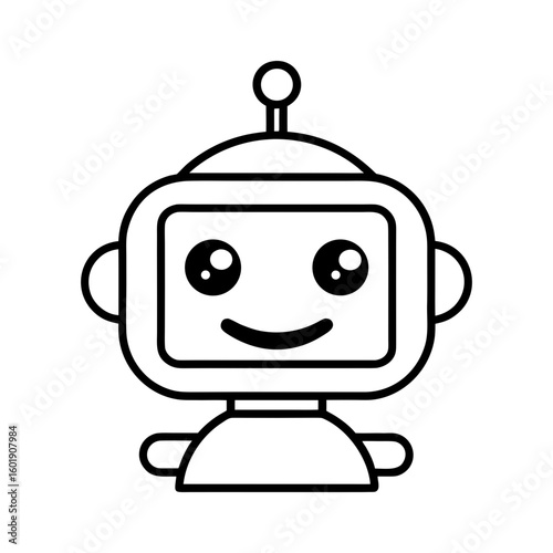 Fototapeta premium Minimal friendly robot head with round body and smiling face vector illustration