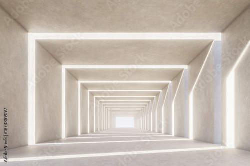 Obraz premium Minimal futuristic corridor with geometric frames