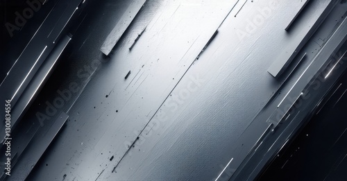 Fototapeta premium Minimal futuristic gradient background soft silver merging dark graphite fine grainy noise texture geometric layering glowing neon edge reflections bright colorful des